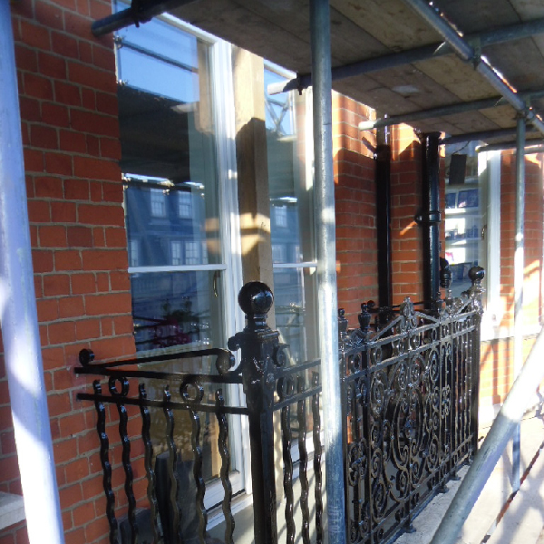 Viscount Court is a 6 storey block of flats with commercial units at ground floor level. Our works included full refurbishment of the front elevation including extensive repointing and joinery repairs to windows, high level stonework repairs and restoration, chimney repairs, and a full redecoration of all previously painted elements. Works also included the complete replacement of all leadwork to 2 copulas.